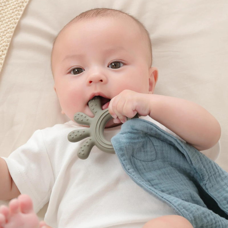 O pacote inclui: 1 Naninha/Mordedor para Bebês - Silicone